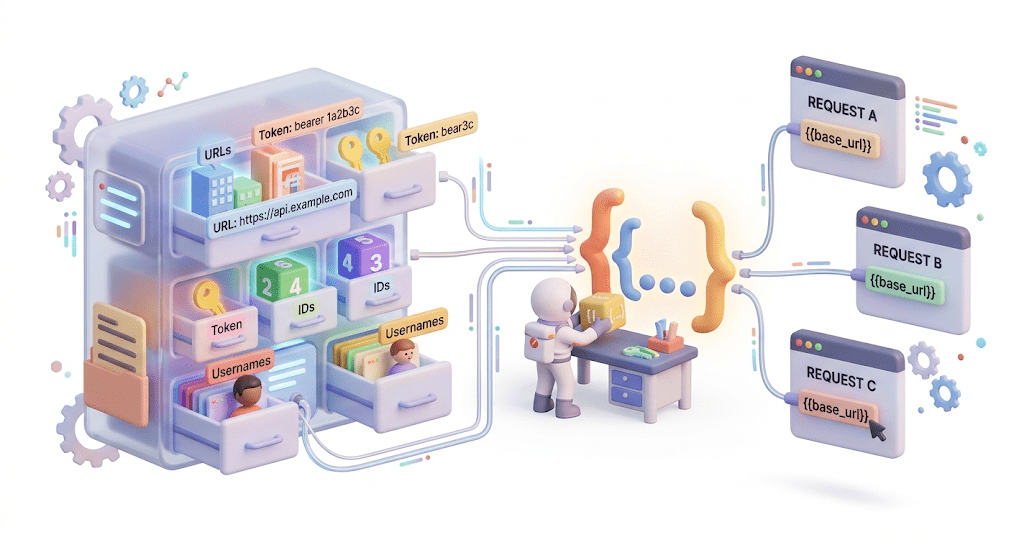 Instead of hardcoding values such as URLs, tokens, IDs, or usernames inside requests, variables allow testers to store these values in one place and reference them dynamically.