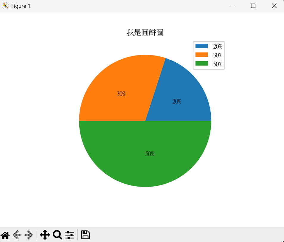 plt.pie([10,15,25],labels=["20%","30%","50%"]) #透過labels將每一資料命名