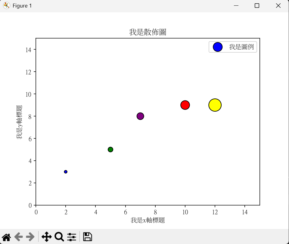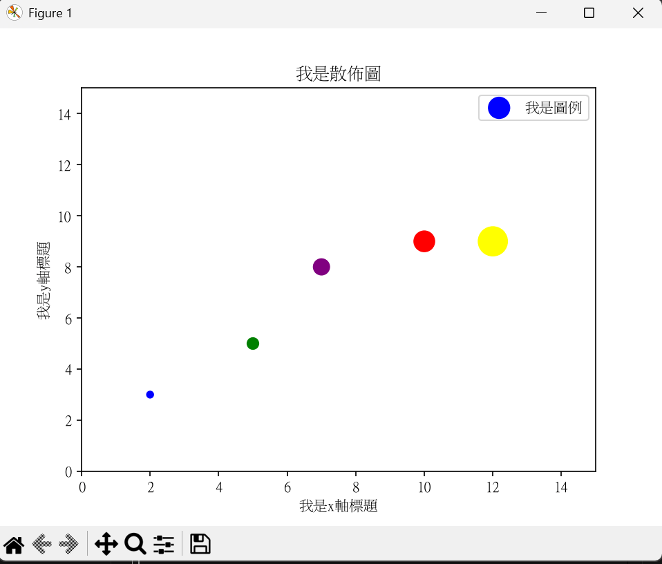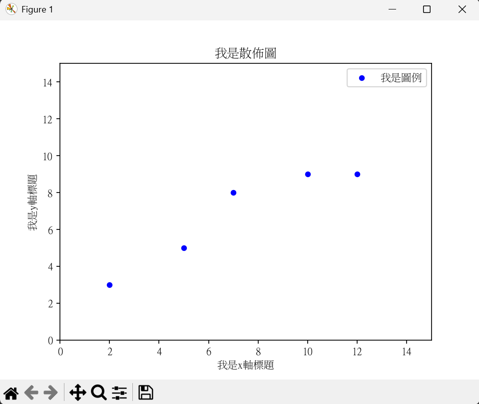 plt.scatter(X,Y,label="我是圖例")import matplotlib.pyplot as plt